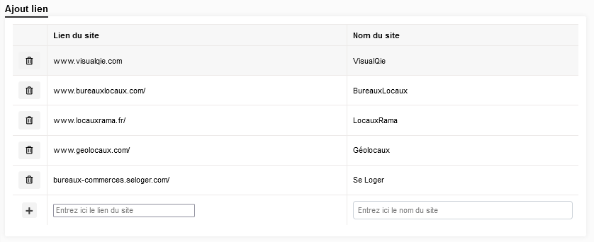 Une fois ces champs remplis, vous validez en cliquant sur le bouton « + » à gauche de la ligne.