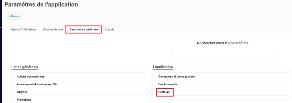 Si vous souhaitez ajouter un nouveau secteur utilisable dans tous les univers du logiciel, rendez-vous dans Utilitaires – Paramètres :