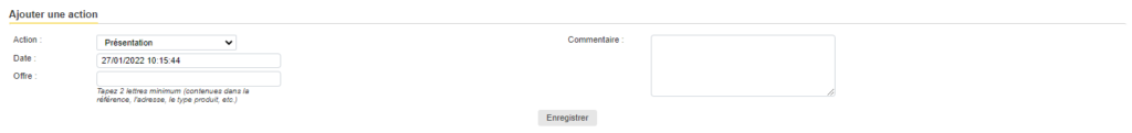 Si vous souhaitez ajouter une action effectuée sur l’une de vos offres, ou de vos demandes ou sur l’un de vos clients, cet article est là pour vous aider !