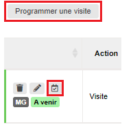 Vous avez la possibilité de programmer une visite en cliquant sur le bouton « Programmer une visite » ou le bouton en forme de calendrier un peu plus bas :