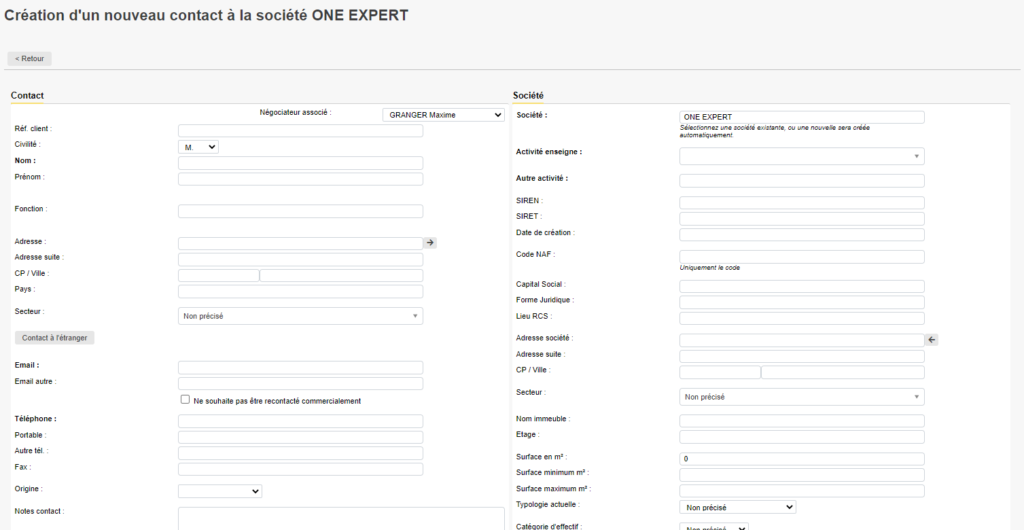 Si la personne souhaitée n’est pas enregistrée dans votre base, veuillez appuyer sur « Ajouter contact à cette société » dans le bloc « Autres contacts ».