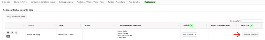 ATTENTION : Une Visite ou une Présentation pourra être dénoncée, les autres actions pourrons être envoyées « pour information »