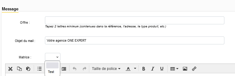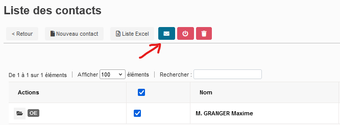 Une fois enregistrée, la matrice peut être utilisée à divers endroits, notamment sur un contact, pour lui envoyer un mail