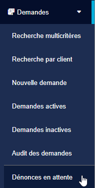 Si vous souhaitez envoyer plusieurs dénonces à un seul mandant, allez dans Demandes – Dénonces en attente :