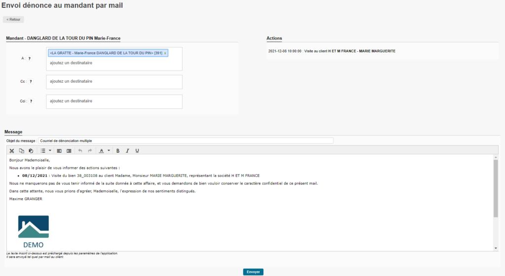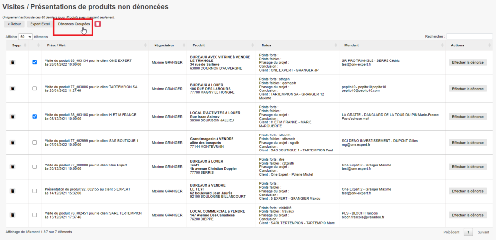 Les dénonces sont maintenant envoyées au mandant !