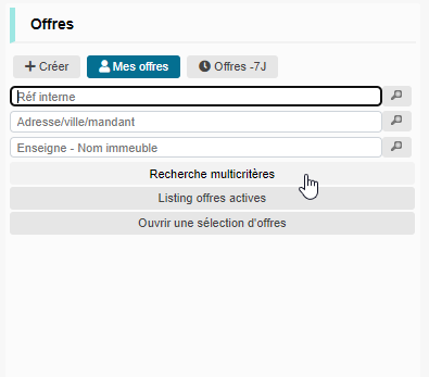 La deuxième, l’onglet « Recherche multicritères » du bloc Offres :