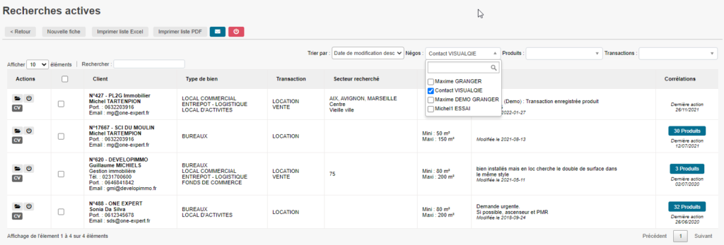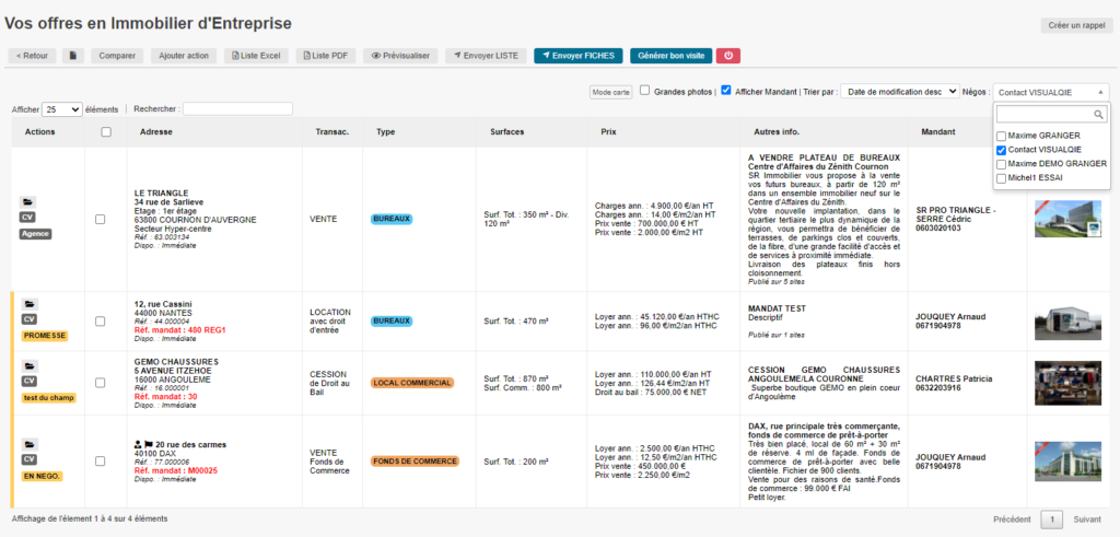 Sélectionnez le négociateur que vous voulez puis s’affichera toutes les offres rattachées à celui-ci.