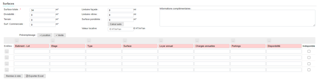 Pour rappel, le tableau de surfaces permet d’indiquer tous les lots qui composent l’offre.