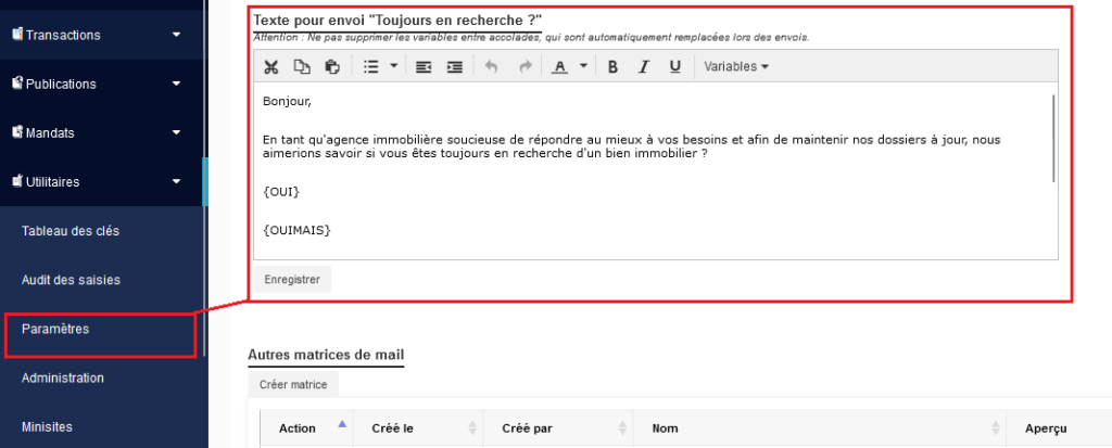 Modifiez le contenu du mail et éventuellement les réponses que vous souhaitez indiquez et envoyer.