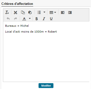 • En bas à droite : un pavé explicatif pour vos critères d’affectation. Vous pouvez définir vous mêmes les critères que vous souhaitez et les renseigner ici