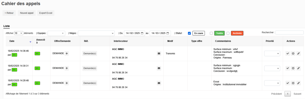 Le cahier des appels est un outil permettant de regrouper tous vos appels en un seul endroit. Il facilite ainsi votre suivi en offrant une vue d’ensemble claire et organisée. Grâce à cet outil, vous pouvez consulter l’historique des appels, suivre leur évolution et assurer une meilleure gestion des demandes.