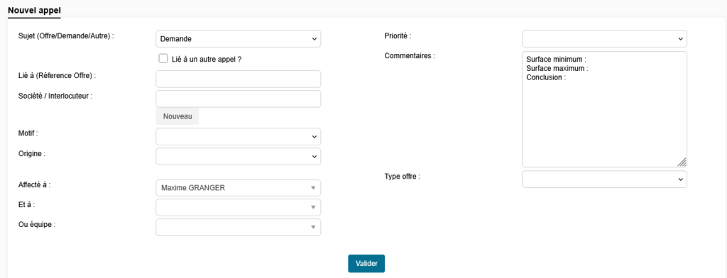 • En bas : un formulaire pour créer un nouvel appel dans la liste.